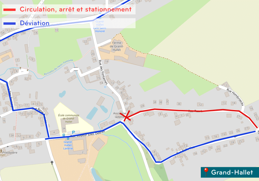 Une déviation sera mise en place par la rue Belle-Vue, dans un sens de circulation, la rue des Fontaines pour rejoindre la rue de Houtain.
