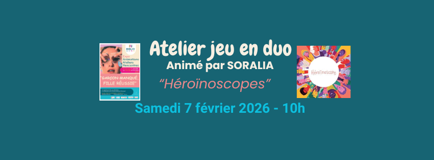 Cet atelier, proposé dans le cadre de l’exposition « ̶G̶a̶r̶ç̶o̶n̶ ̶m̶a̶n̶q̶u̶é̶, Fille réussie », sera animé par 𝘚𝘰𝘳𝘢𝘭𝘪𝘢 et se vivra en duo : un enfant (entre 10 et 14 ans) et son parent proche.