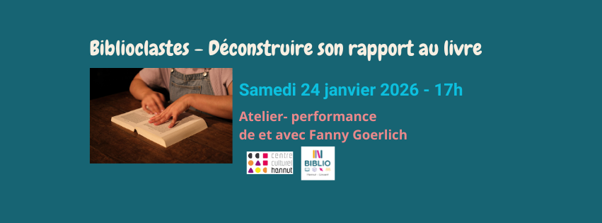 « 𝗕𝗶𝗯𝗹𝗶𝗼𝗰𝗹𝗮𝘀𝘁𝗲𝘀 » est une performance/atelier qui interroge son rapport au livre et invite à la déconstruction de l’image que l’on s’en fait et de la relation que l’on entretient avec cet objet culturel.