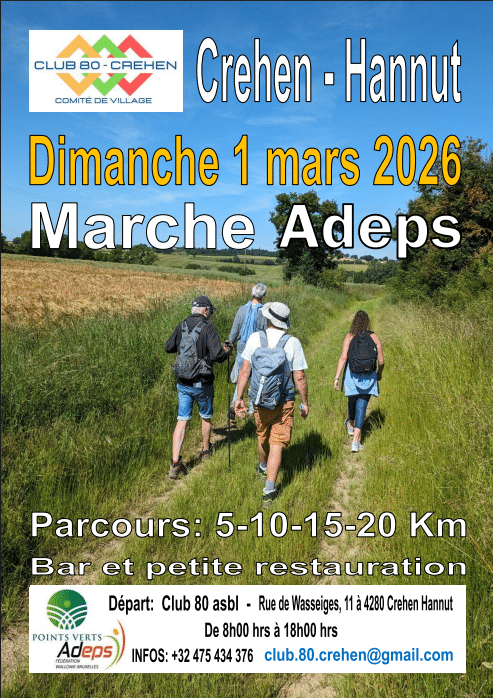 Marche Adeps au Club 80 de Crehen le dimanche 1er mars 2026