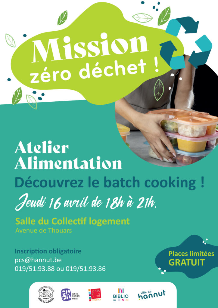 Mission zéro déchet – Atelier alimentaion Date 16 Avr 2026 Heure 18:00 - 21:00 Lieu Salle du collectif logement Avenue de Thouars à 4280 Hannut Téléphone 019510979 Catégorie Bien être Environnement Santé Articles récents Travaux Rue Joseph Wauters du 9 au 31 mars Travaux rocade de contournement du 9 au 20 mars 2026 Rallye de Hannut (6, 7 et 8 mars) Du nouveau dans la collecte des plastiques agricoles non dangereux Égouttage et réfection de voirie rue Ruart à Grand-Hallet