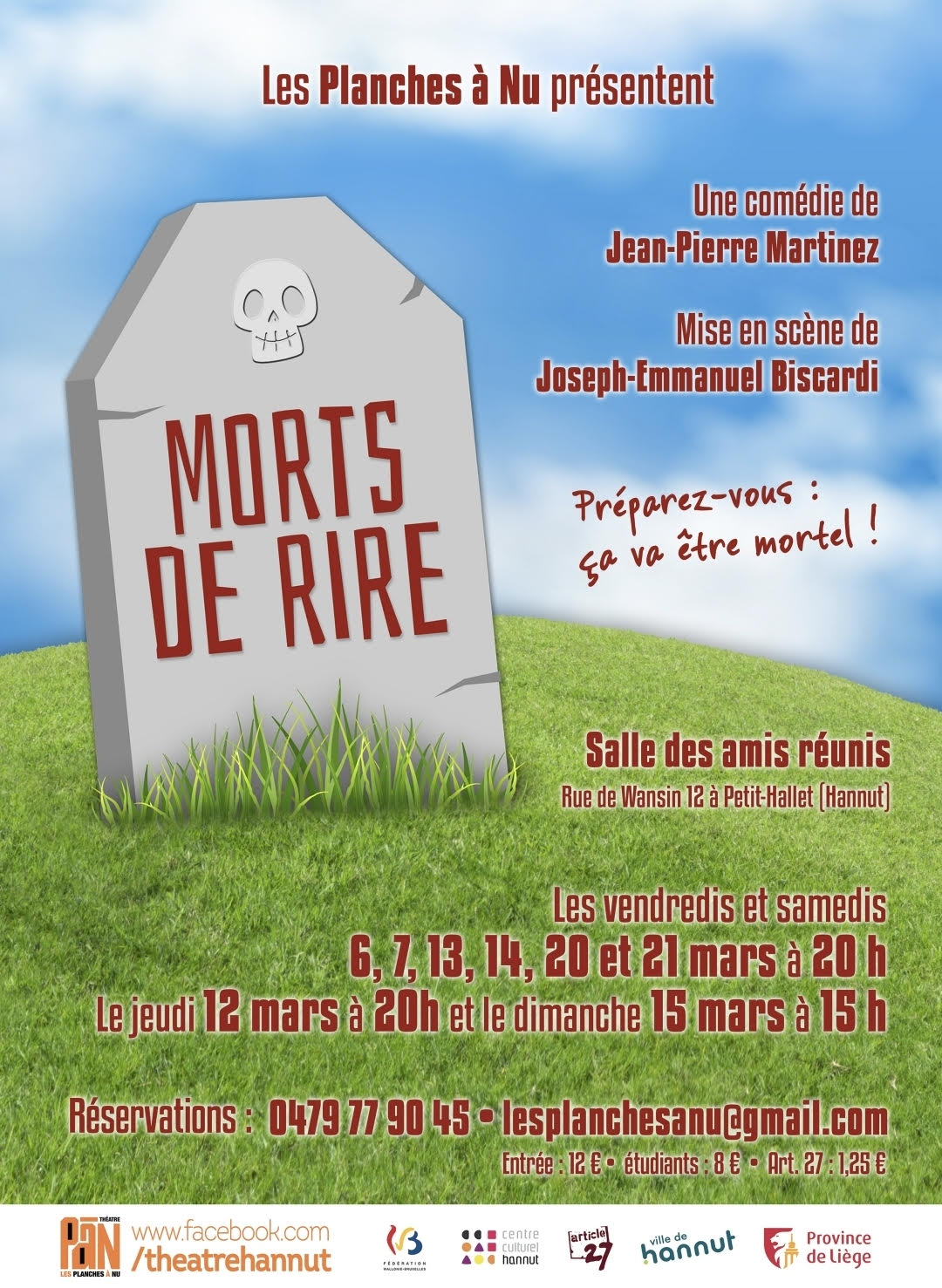 Avec Morts de rire, la compagnie Les Planches à Nu propose une comédie contemporaine grinçante et résolument vivante, signée Jean-Pierre Martinez, qui s’attaque avec audace et humour à l’un des plus grands tabous de notre société.