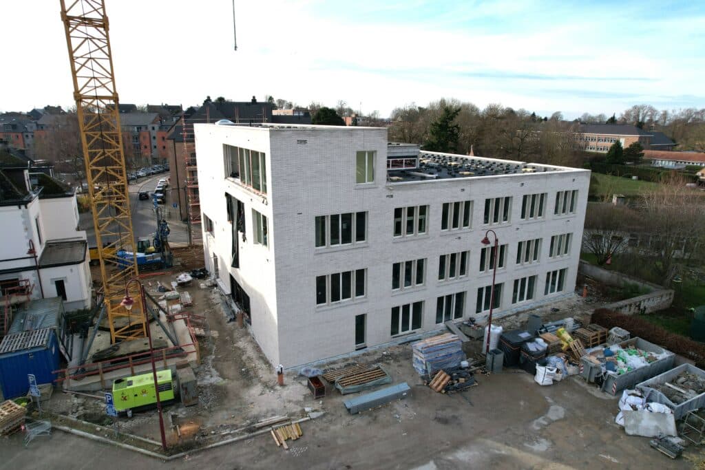 Avant les congés de fin d’année, deux étapes importantes ont été atteintes dans le chantier de la nouvelle administration : le béton lisse a été coulé sur l’ensemble des étages et la majorité de l’échafaudage a été enlevée, permettant de visualiser l’ensemble de l’extérieur du bâtiment.